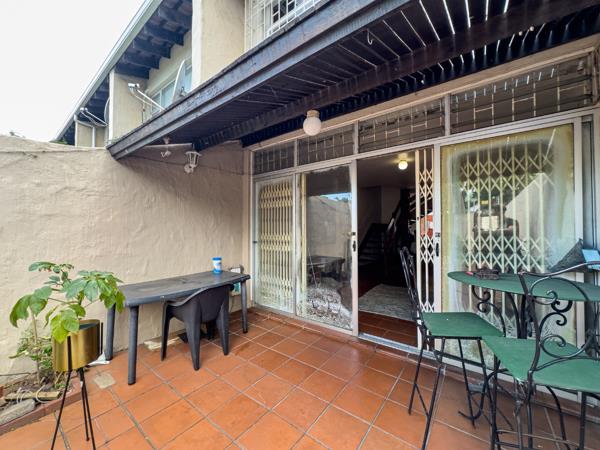 Step outside to a private, compact outdoor patio, also finished with terracotta-style tiling, offering a serene space for relaxation and entertainment. This area includes a covered seating space and a small plunge pool, presenting an ideal opportunity for outdoor enjoyment. The property boasts enhanced security features, including robust security gates on all access points, burglar bars, and electric fencing, providing peace of mind. A single garage and an additional parking space cater to your vehicle needs.