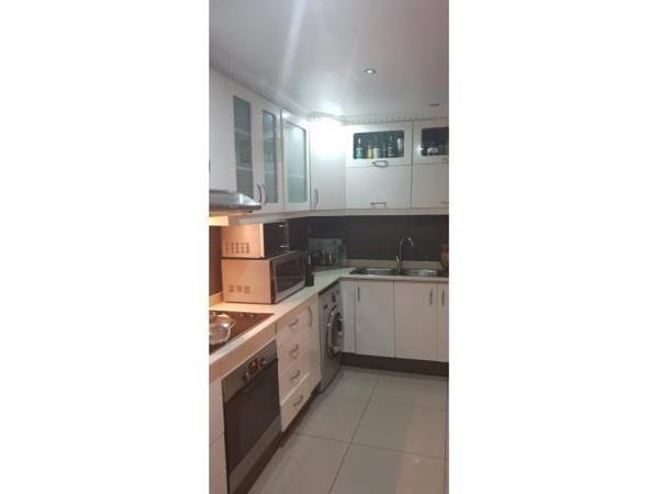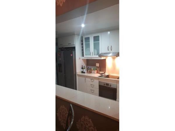Well-appointed kitchen with Caesarstone tops, cupboards, oven & hob, and double sink