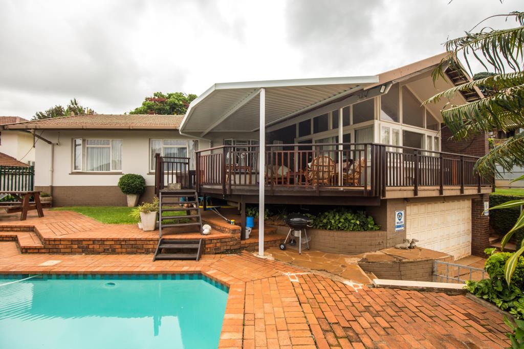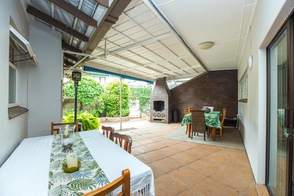 A large open plan kitchen, dining area, lounge and bar area. Lots of place to entertain, a braai area, a deck overlooking a sparkling pool. Double garage with lots of extra parking behind a secure electric fence.