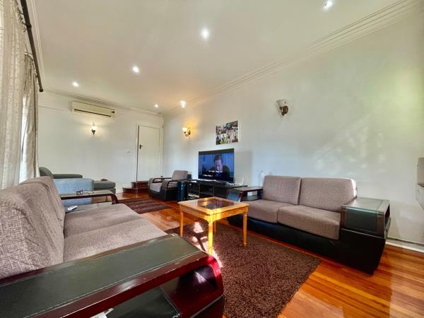 The private quarters of the main house is equally appealing. It accommodates three spacious bedrooms, all featuring warm wooden floors and built-in cupboards. These rooms enjoy easy access to a beautifully renovated, fully tiled bathroom with contemporary designs, offering a shower, toilet, and basin. For added convenience and guest use, the home also features a separate guest toilet. Throughout the main residence, the design prioritizes both style and practical living.