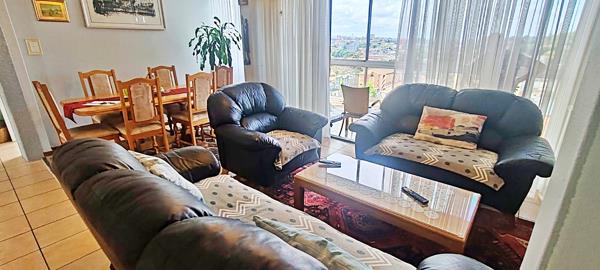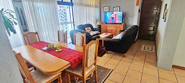 A very spacious 2 bedroom with a separate dining room and lounge, air conditioners, an enclosed verandah, with ceiling to floor windows. Down the passage are 2 good-sized bedrooms, a family bathroom with an area for your washing machine and tumble drier. The main bedroom has an en-suite that comprises of a bath, shower over the bath, loo and basin.