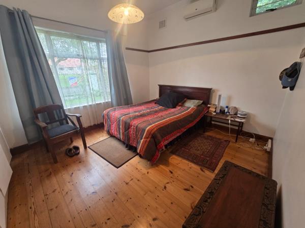 This three bedroomed home has got high ceilings and beautiful Oregan pine strip Floors. ALL three bedrooms have air-conditiones and built in cupboards. Large bathroom with bath, shower, basin and toilet. Spacious lounge/dining area. Neat kitchen is plumbed for dishwasher. Small back garden with built in braai. Tiled outside room, laundry. Drive in access for three vehicles parking tandem. Two are undercover. For private viewing please contact me