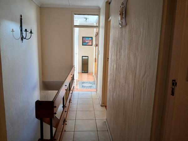 Ceramic floor tiles fitted in the kitchen and two outdoor areas to enjoy a braai or a party. Very convenient downstairs guest toilet. Upstairs comprise 3 bedrooms and 2 bathrooms, all rooms have built in cupboards. There is a unique atrium feature that compliments the centre of the home and can various uses to suit you.