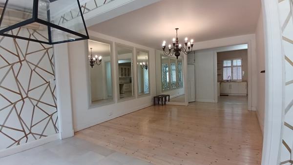 The stylishly renovated lounge / dining area is a masterpiece with a large mirrors and elegant chandelier.