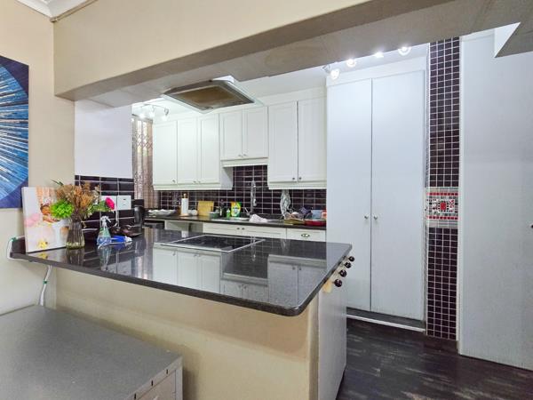 Upstairs, you''ll find three bedrooms, two bedrooms with built-in cupboards, sharing a spacious family bathroom with a tub. The master bedroom is a true retreat, offering a beautiful en suite with a shower, a walk-in closet, and stunning ocean views right from the comfort of your bed. This unit comes with two (2) parkings and a storeroom. The apartment block has excellent security with a nigh security guard from 6pm till 6am daily. To keep you and your loved ones save at all times, there is uninterrupted power supplied to the electric fence, gate, beams and outside lights during load shedding.