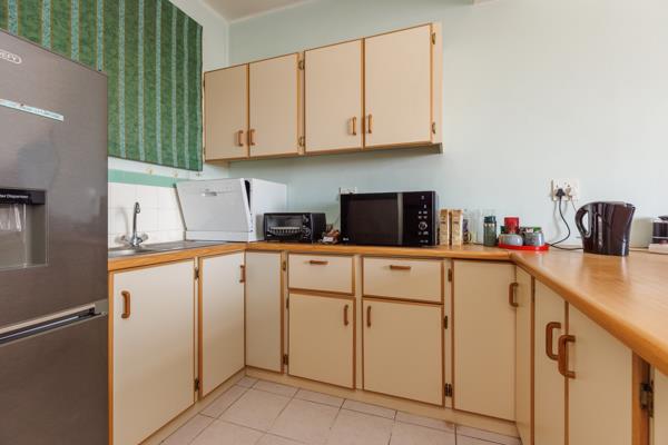 The kitchen is spacious with ample cupboard space, very neat cupboards, the kitchen is open to the lounge dining room.