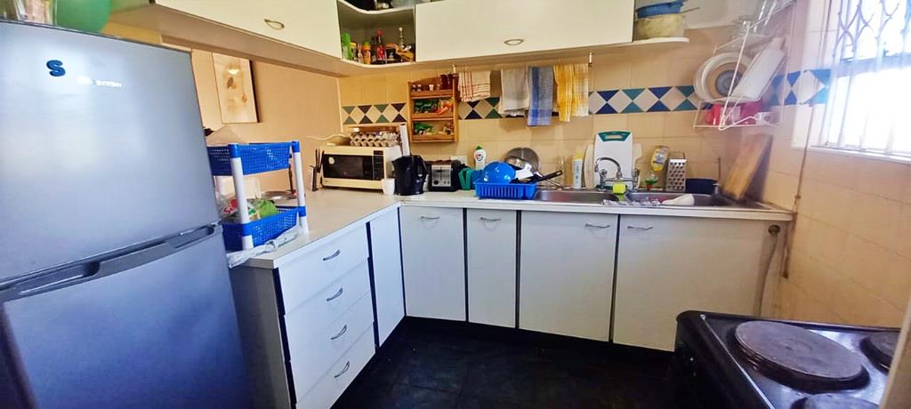 The unit itself is spacious and tiled throughout. The kitchen has sufficient built-in cupboards, with a serving hatch to the open plan lounge and dining room.