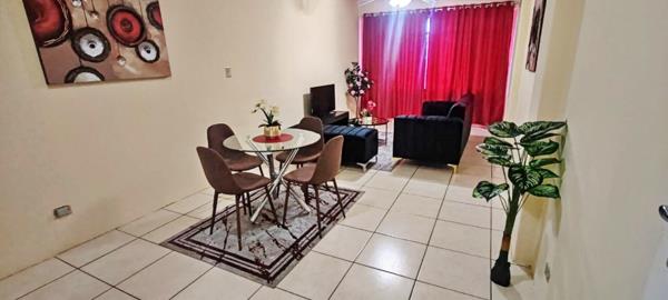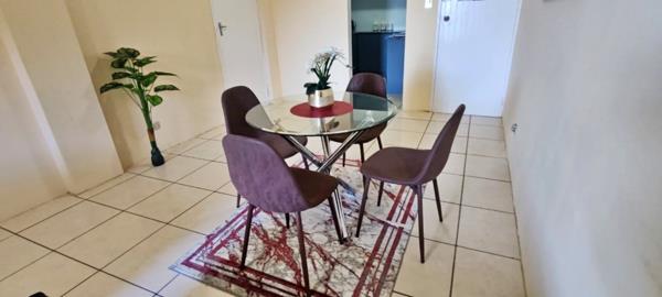 The flat is tiled throughout, is situated in a secure block in a quiet cul-de-sac, with access control and electric fencing. An open bay parking comes with the unit.