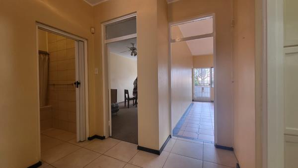 Being a corner flat it has extra space at the entrance. Kitchen has ample cupboards, ceiling fans in the lounge and bedroom.