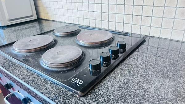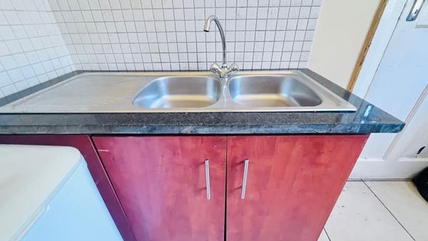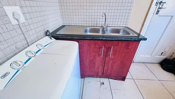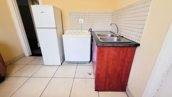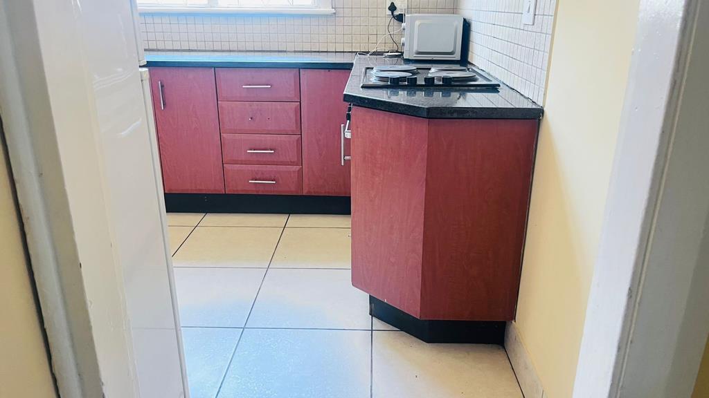 As we walk into this apartment the kitchen has porcelain tiles, built in wooden cupboards, a washing machine, fridge, built in stove and a burglar guard to keep you safe at all times.