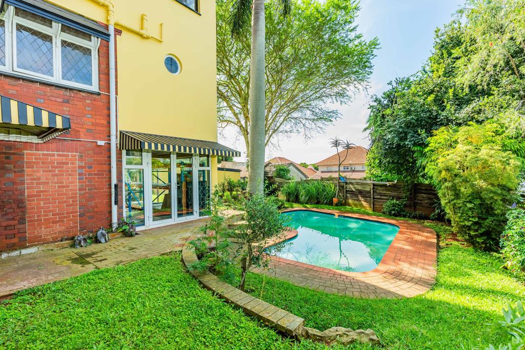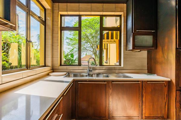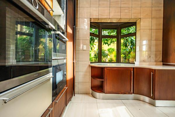 This four bedroom double-story has old world charm, high-quality finishes and generous living spaces. Modern white granite kitchen with dark-wood detail, built-in microwave, eye-level oven and gas stove top. Huge dining room and two ultra spacious lounges. Study and welcoming entrance hall.
