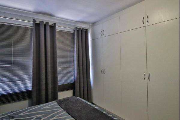 The second bedroom has wooden built in cupboards, spacious and a has a fan.