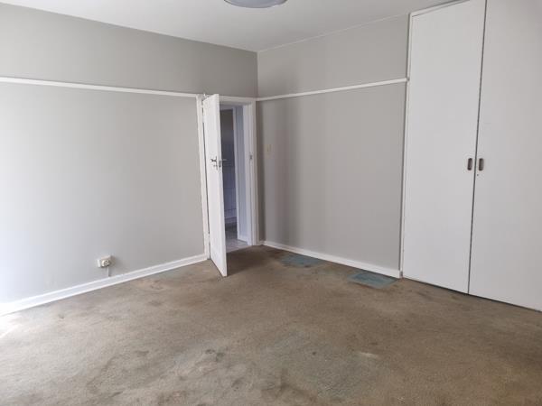 The main bedroom is impressively large, with plenty of built-in cupboards, and the kitchen offers an abundance of cupboard space, a double sink, and a standalone gas stove. The unit has both front and back door access for added convenience.
