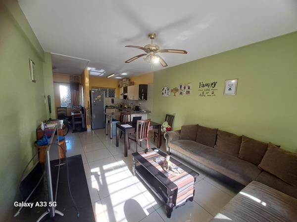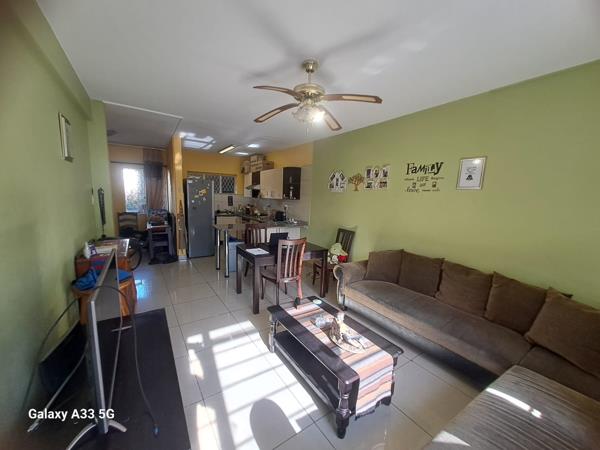 a tiled floor with bright color, big sized lounge with a dinning area and large bedroom.