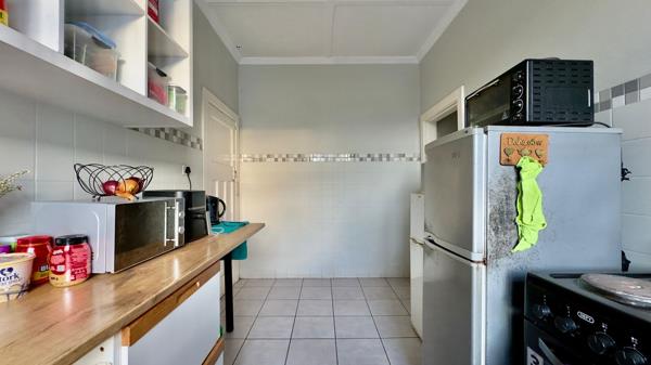 The living area boasts natural light, high ceilings, and vintage touches throughout, adding warmth and personality to your home. The kitchen features plenty of cabinet space and traditional fixtures, with room for a small breakfast table. The bathroom is clean and simple, offering all the essentials.