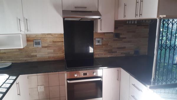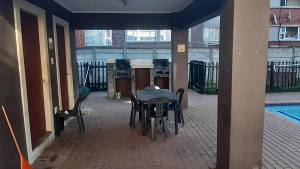 The bathroom has a modern shower and is tiled throughout. The unit comes with two parking bays a braai area pool and washing line.
