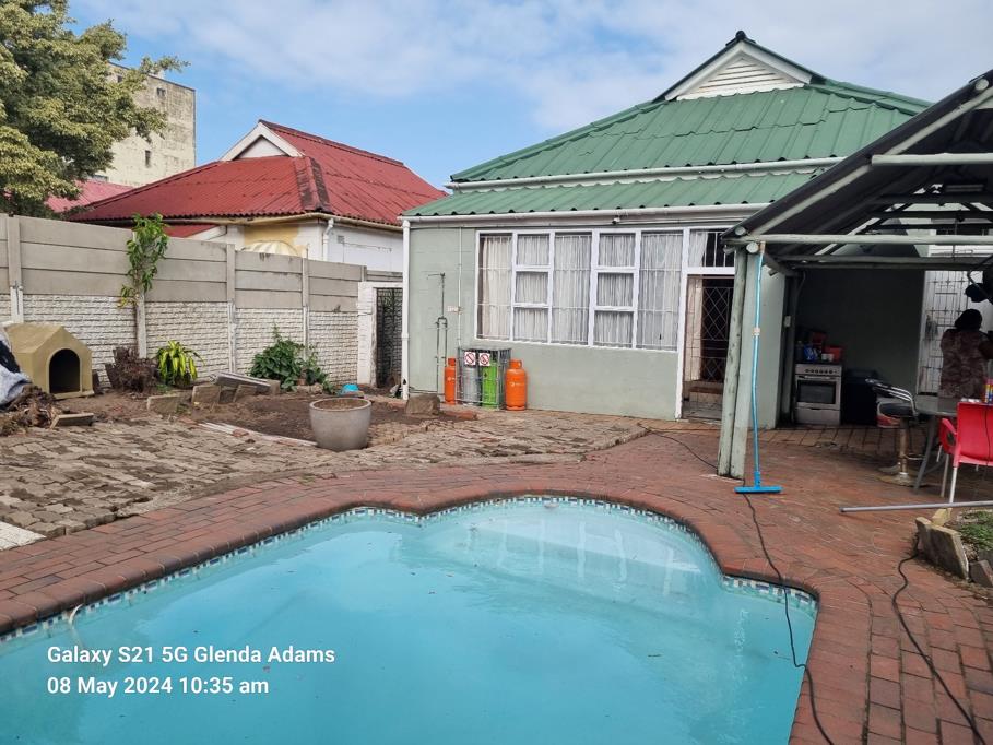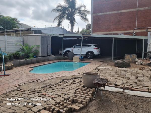 As you exit the back door, there is an undercover entertainment area. A large size yard with a lovely swimming pool.