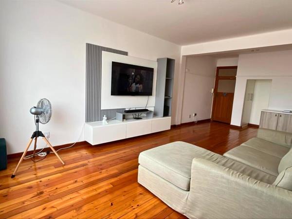 Featuring built-in cupboards in both bedrooms, stunning wooden floors, and an immaculate kitchen equipped with a hob, oven, and extractor fan, the unit exudes quality and style. The spacious lounge includes a built-in TV unit, while the bathroom is fitted with both a shower and a bath.