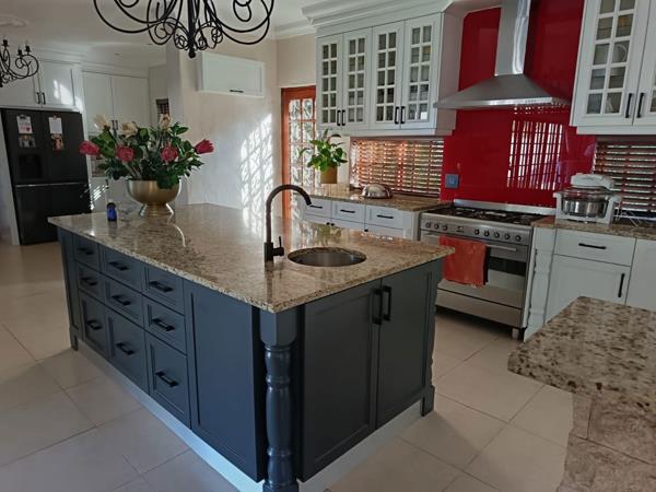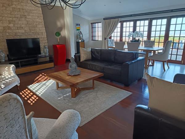 The private patio surrounds the sparkling pool and an added bonus is a built-in braai. There is also income generating potential with two, one bedroom self contained cottages currently generating R10 800 per month. There is drive in access to one of the cottages.