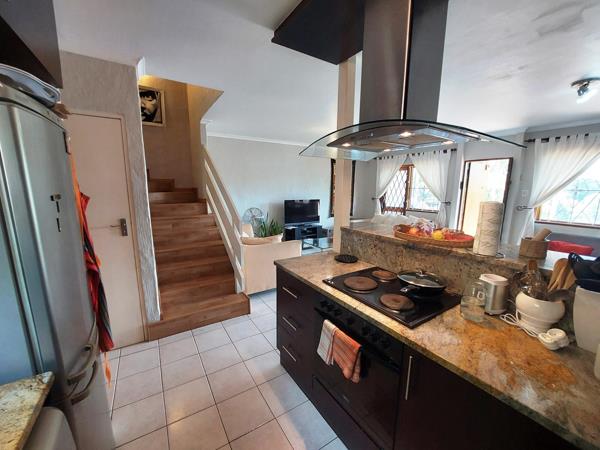 On the ground floor there is an open plan kitchen, lounge and dining area. The kitchen has a lot of BIC''s, granite tops, UCO, HOB and extractor fan. A guest loo is on the ground floor. At the back there is a washing line area, laundry room and storage space. There is a mini garden in the front of the unit.