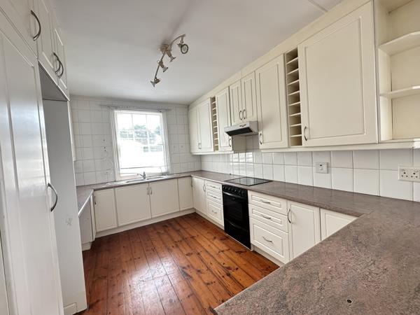 The home features a spacious, fully fitted kitchen with generous storage, granite countertops, and a functional layout that opens into the dining area. A separate lounge provides an additional space to unwind, while the beautiful wooden flooring throughout the home adds character, warmth, and sophistication. The main bedroom is en suite and fitted with ample cupboard space, while the remaining three bedrooms are well-sized and versatile, easily accommodating a growing family or a home office setup.