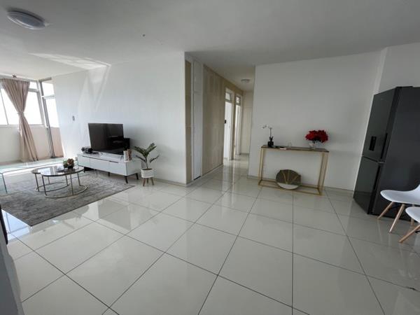 This spacious 97 sqm apartment presents an exceptional opportunity, whether as a comfortable home or a sound investment, in the vibrant and sought-after suburb of Morningside. Step inside to discover a well-designed interior featuring an open-plan lounge and dining area, ideal for relaxed living and entertaining. The functional kitchen is equipped with a hob, oven, extractor fan, and plumbing for a washing machine, complemented by ample cupboard space.