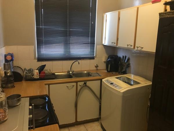 Spacious 65sqm one bedroom apartment with built-in cupboards leading onto a sunroom which could be used as a study or office. One full bathroom, large lounge area with neat kitchen.