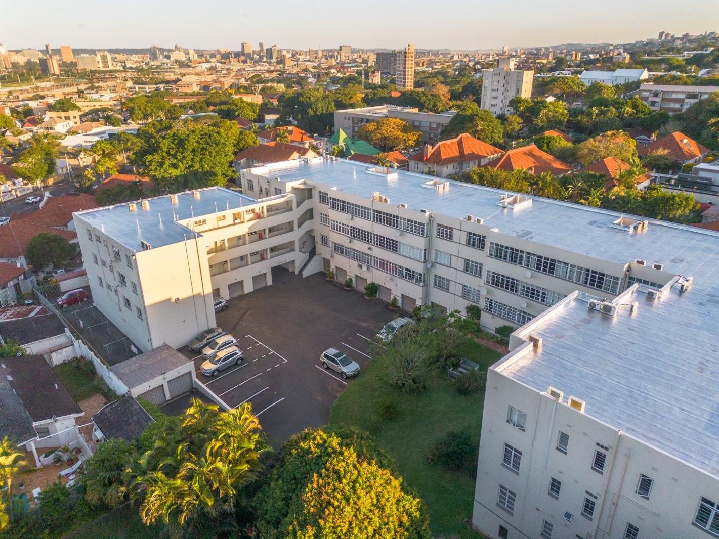 Unit overlooks Moses Mabhida and the ocean. This is a large one bedroom apartment with a tiled fitted kitchen, open plan lounge dining room with wooden floors. The bathroom has a bathtub and an overhead shower head with fitted shower glass and is plumbed for a washing machine. Good natural light permeates throughout.