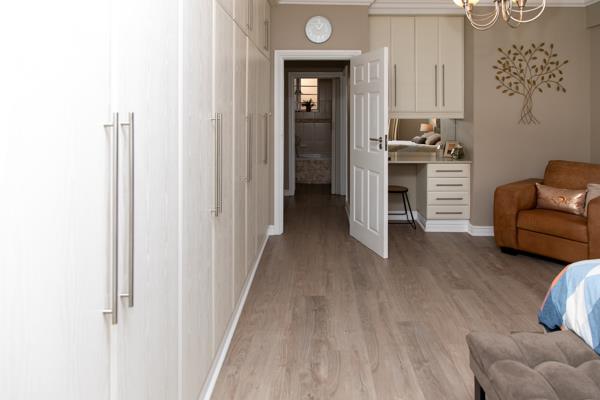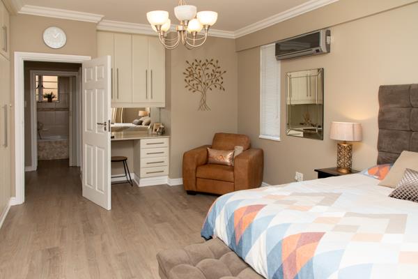 The large main bedroom has loads of cupboards, built in dresser and also has a air conditioning unit