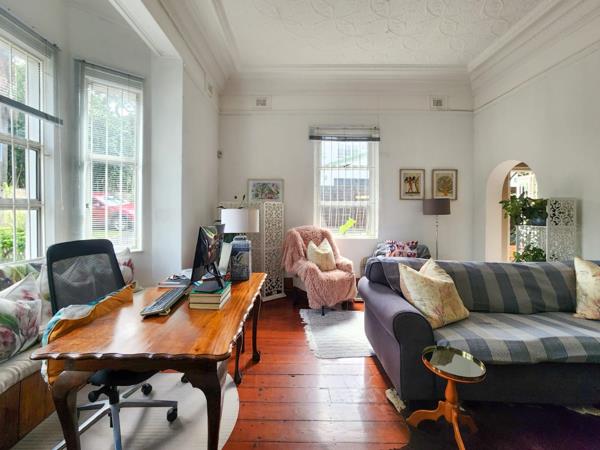 Step into this enchanting double storey unit, nestled in a secure and well managed complex on Innes Road, and discover a world of charm and character. Levy includes water. Conveniently located within walking distance to Clifton School, this one-of-a-kind gem is perfect for families, pet lovers, and entertainers alike. The quaint front garden welcomes you before the little balcony for your morning coffee and private paved patio area at the back off the kitchen invite relaxation and alfresco dining with privacy in the evenings, while the high moulded ceilings and wood strip flooring add a touch of sophistication to the sunny lounge, fully fitted kitchen, and bathroom below.
