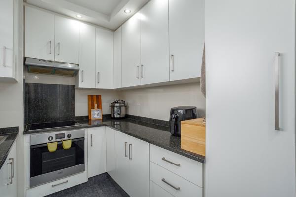 This corner unit is beautifully tiled throughout with downlights and is bright and airy.