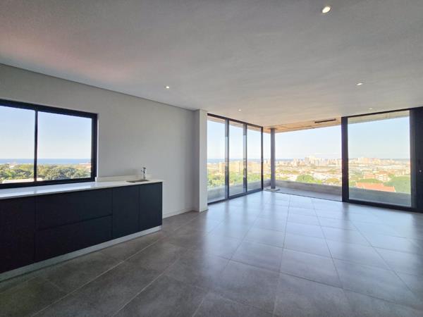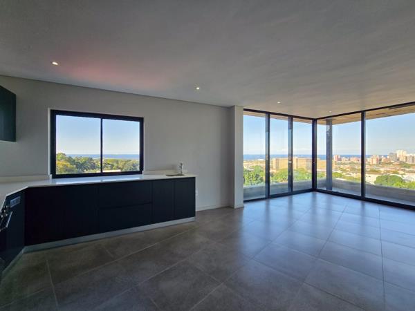 This spacious, open-plan kitchen features brand new appliances, including a stove, hob, and extractor, as well as stunning countertops. It seamlessly flows into the dining area and lounge, creating a perfect space for entertaining and everyday living. The lounge opens up with sliding doors that lead onto a generous balcony offering breathtaking sea and city views.