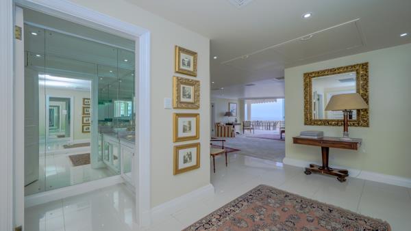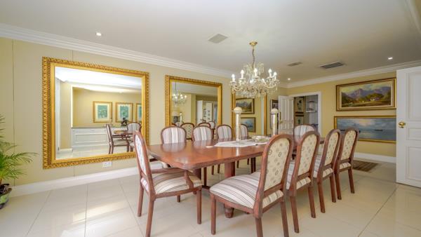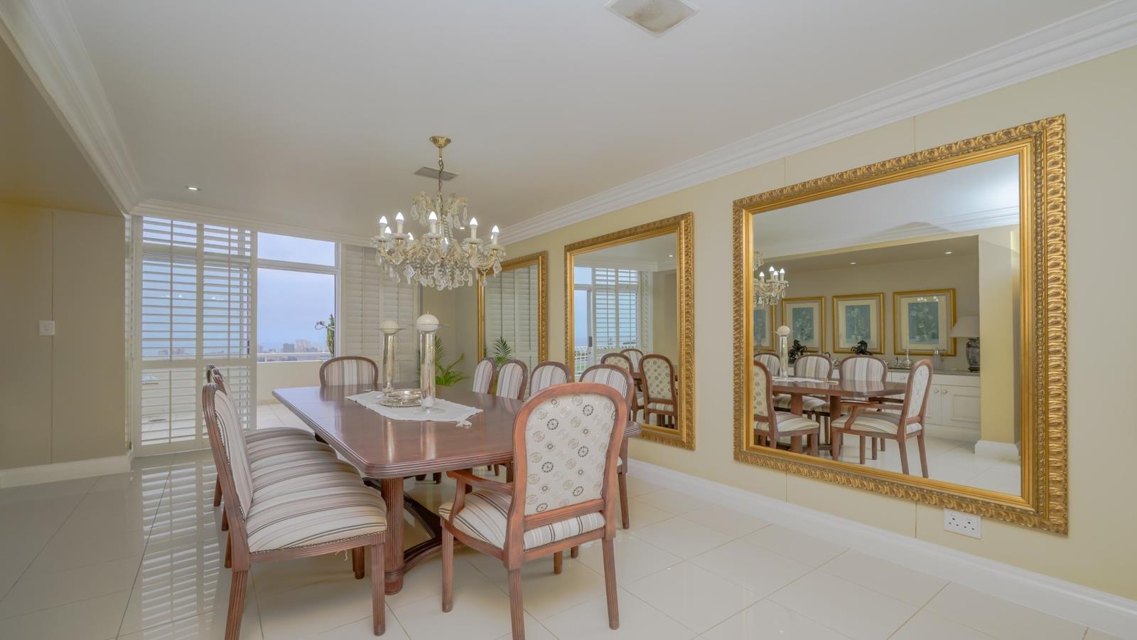 The dining room is extremely spacious able to comfortably accommodate a 10-seater and leads onto the balcony with stunning uninterrupted sea-views.