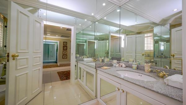 The kitchen is equipped with eye-level ovens, centre island breakfast nook, electric stove with an extractor fan and 3 fitments for washing machine, dishwasher and dryer. There is also space for separate single door fridge and freezer. The kitchen has plenty drawers and built-in cupboards leading directly into the dining room.
