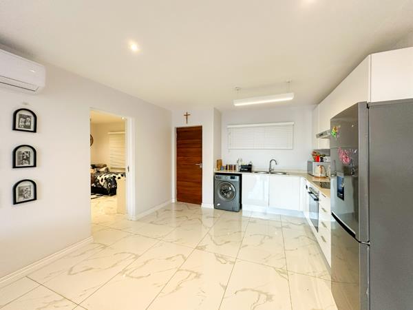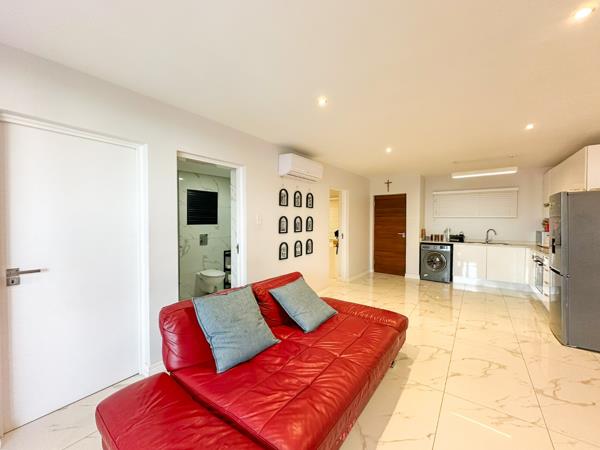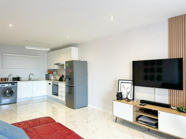 This modern 2-bedroom apartment is located in a prime area, offering luxurious living with its beautiful modern finishes. The open-plan kitchen flows seamlessly into the lounge and dining area, creating a spacious and inviting atmosphere. This space further extends to a private garden area, perfect for relaxation or entertaining guests.
