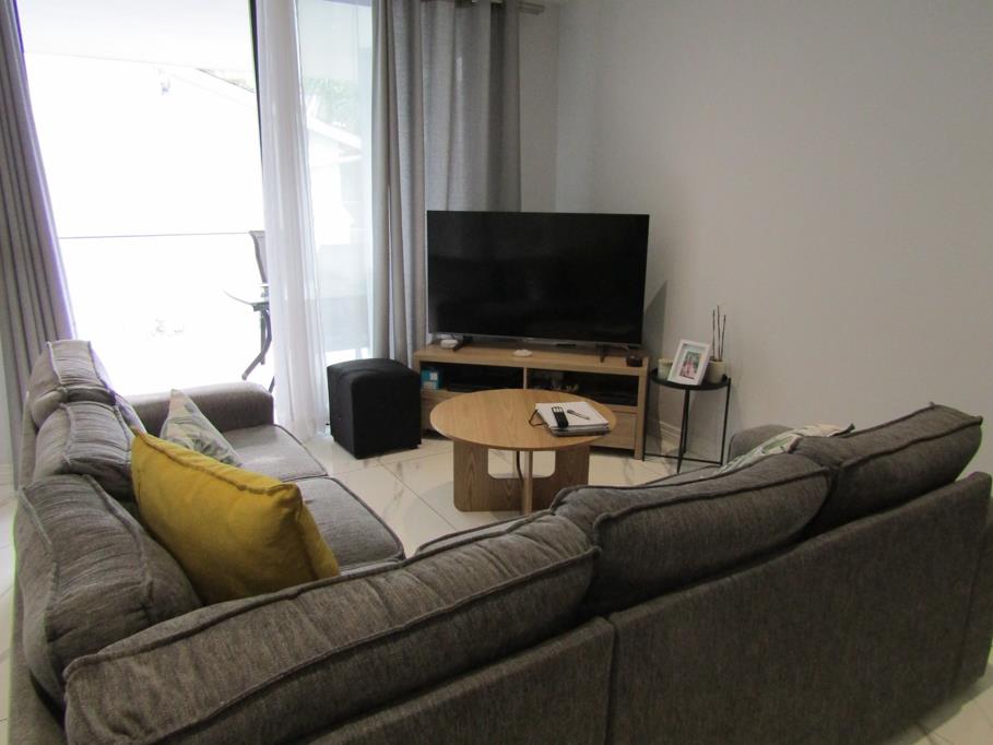 The unit has two spacious bedrooms, MES, a second bathroom, open plan kitchen and lounge and a lovely balcony with views. There are two dedicated undercover parking spaces right outside the door of the unit, and a manned security gate at the entrance to the building.