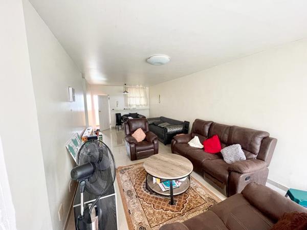 The main bedroom includes a private en-suite bathroom with a bath, toilet, and basin. The second and third bedrooms are also large and comfortable. ideal for enjoying natural light and fresh air. A neat family bathroom with a shower, basin, and toilet serves the additional bedrooms. The lounge and dinning room is spacious and comfortable . The fitted kitchen with melamine countertops, a hob, and an eye-level oven. Part of the house is tiled and rest has swiss parquet. This home is low-maintenance and perfect for modern living.