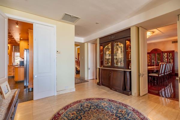 The outdoor space is exceptional an entertainers paradise. Enjoy the built-in braai area on the deck, which overlooks a large swimming pool and lush garden, all set against the backdrop of breathtaking city and sea views.