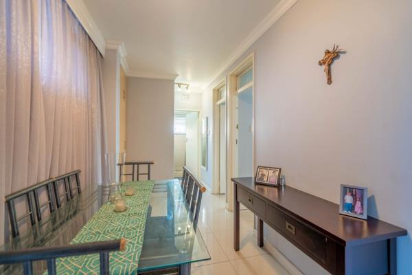 The spacious passage is wide enough to accommodate a separate dining table and chairs, perfect for hosting dinner parties and entertaining guests. The two decent-sized bedrooms are flooded with natural sunlight and offer ample cupboard space. The main bathroom features a bathtub, basin and plumbing for a washing machine, while a separate shower is located adjacent to the guest loo. This stunning apartment is fully tiled throughout and features aluminium windows and sliding doors. Two secure parkings and a storage place have been allocated to this unit, providing you with ample space to store your belongings. The well-maintained building boasts a lift and good security, giving you peace of mind and a sense of safety. Visitors parking is also available for your guests.
