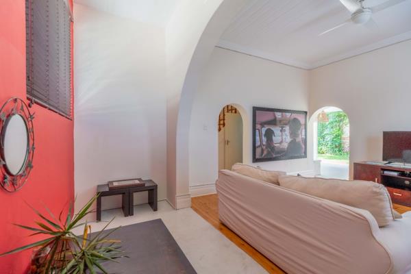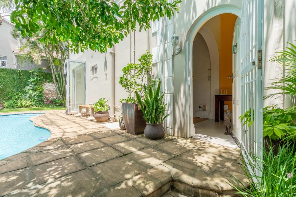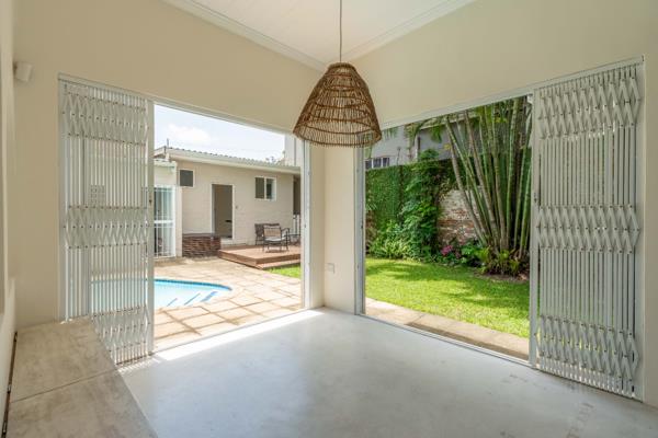 Enter this immaculate double-story house with so much character and charm. Down stairs you will find a fully fitted kitchen with granite tops that flow to an open-plan dining area with aluminium sliding doors ideal for entertaining around the pool and manicured garden. There is a family bathroom. Upstairs, you will find a spacious main bedroom en suite and two additional bedrooms, one being a spacious interleading bedroom. Beautiful wooden flooring, aluminium windows and split level airconditioning throughout the house.