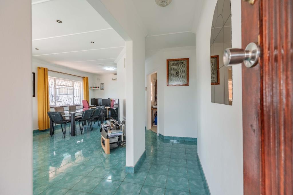 Nestled within the suburb of Morningside, in the Waller Crescent neighbourhood is a traditional single-story, elevated position, family home with durable tiled roof. A remote controlled gated entry, complemented by comprehensive security features including window bars and perimeter fencing, ensures a secure living environment. The structured terraced front yard, with its stone retaining walls, provides a foundation for bespoke landscaping, while an inclined driveway leads to both a covered carport and a dedicated single garage, collectively accommodating up to five vehicles.