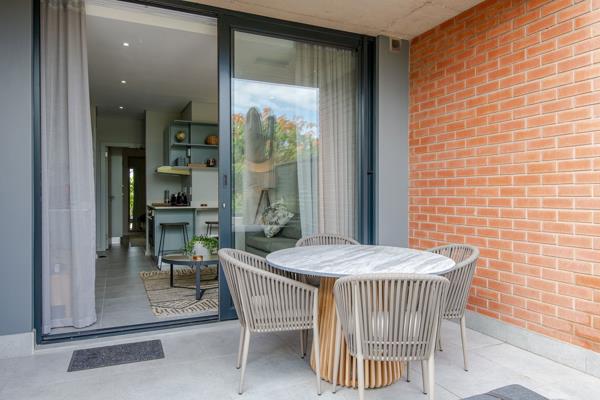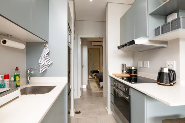 This unit is extra special as it features a double volume entertainment patio perfect for unwinding after a busy day. The apartment has been thoughtfully designed with top of the range finishes throughout. It includes a bedroom with built-in cupboards and aircon, modern bathroom with spacious shower and fully fitted open plan kitchen inclusive of appliances.