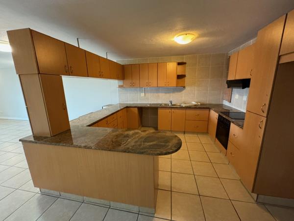 The kitchen is generously sized and fully fitted with modern finishes, ample storage, granite countertops, an oven and hob, and plumbing for a washing machine.