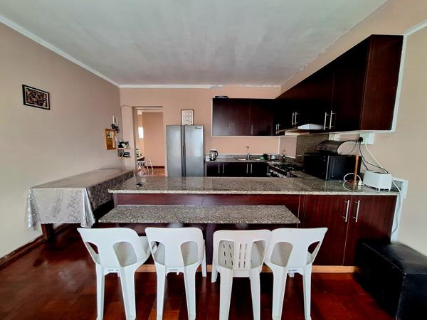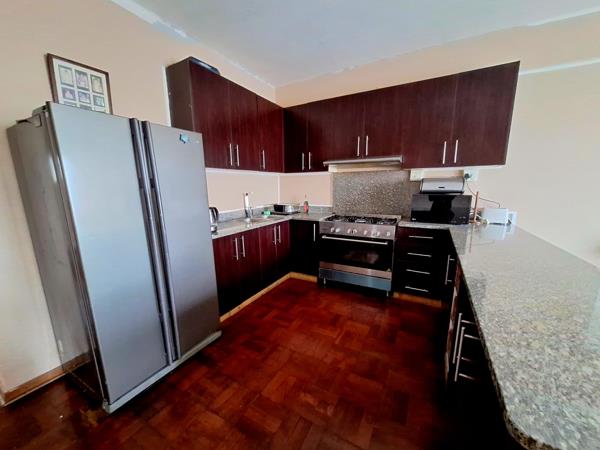 Offers a spacious open plan lounge and dining area, perfect for entertaining. Two comfortable bedrooms with built in cupboards. The Ultimate Advantage are the Two Kitchens, the Primary Kitchen is a chef''s delight, fully fitted with gorgeous granite countertops, gas stove, an undercounter oven, and an extractor. Second Kitchen offers amazing potential, perfect as a large scullery or can easily be converted, into a third bedroom or home office and a convenient bathroom with a shower and separate toilet. Comes with one allocated parking. There''s also an option to rent a second parking ,for R400 per month.