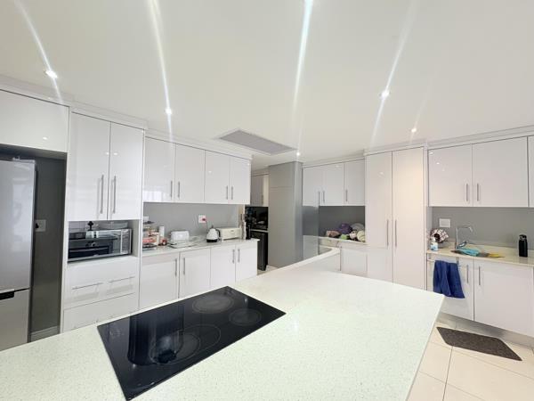 The contemporary kitchen is fitted with premium cabinetry, ample workspace, and a scullery, ensuring both sophistication and practicality for the modern homeowner.