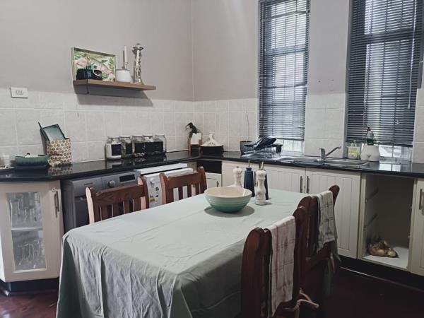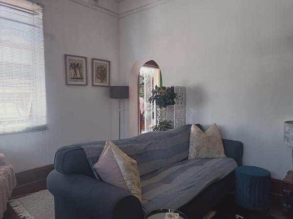 The entrance hall welcomes you to a charming balcony, perfect for relaxing afternoons, and leads into a spacious open-plan lounge and dining area with high ceilings and classic wooden floors. The airy living space opens up to a cozy backyard with a private braai area and its own separate entrance, ideal for entertaining or unwinding in privacy. A front garden adds to the homes charm and appeal.
