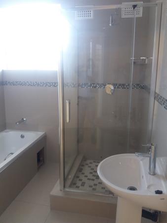 1 Bathroom with bath, basin and shower with a separate toilet.