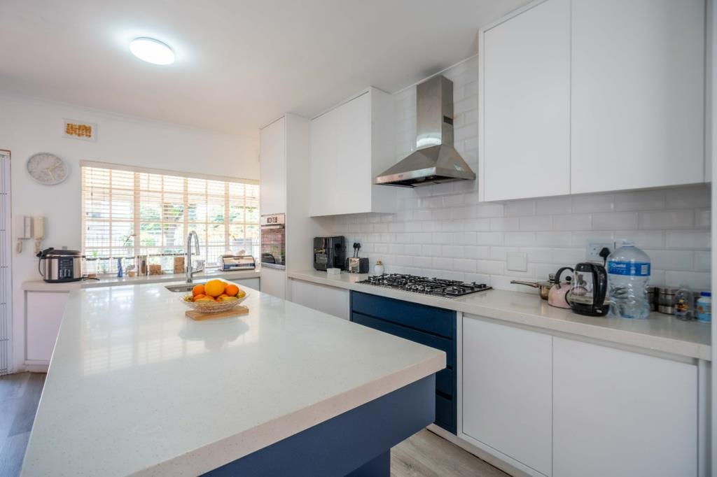 The kitchen is a culinary haven, featuring a central island, a high-powered extractor, a piped gas stove, and a built-in oven. A blend of grey and white cupboards with thick Caesarstone countertops perfectly complements modern living. The scullery area includes a double sink. Downstairs, you''ll find two spacious bedrooms adorned with natural sunlight, built-in cupboards, seating areas, and American shutters. Ascending to the upper level, you''ll discover the master bedroom, a sanctuary many dream of, complete with built-in cupboards, built-in USB chargers for your devices, reading lights, and an ensuite with a shower, basin, bathtub, and toilet featuring rocky finish flooring.