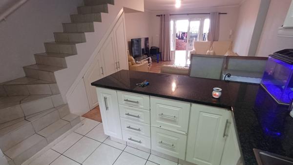 This well-maintained double-storey townhouse offers modern comfort and effortless living in the sought-after Morningview complex. The downstairs level features a generously sized tiled lounge flowing out to a sunny patiobalcony, ideal for relaxing or entertaining. The open-plan kitchen comes fitted with an oven and hob, granite countertops, and space for both a washing machine and dishwasher. The home is in excellent condition throughout, offering a fresh, move-in-ready feel.