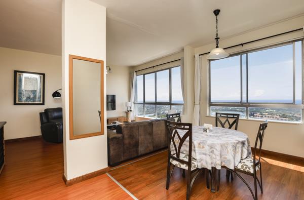 Perched on the ridge, this gorgeous two-bedroom apartment unfolds with panoramic sea and city views that greet you through immense showcase windows. Natural light pours through the open-plan living area from the lounge, dining, and kitchen area, creating a calm, relaxing ambience.
